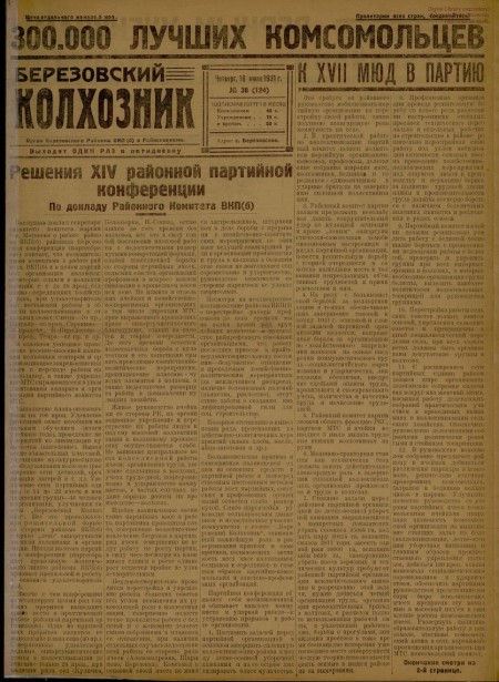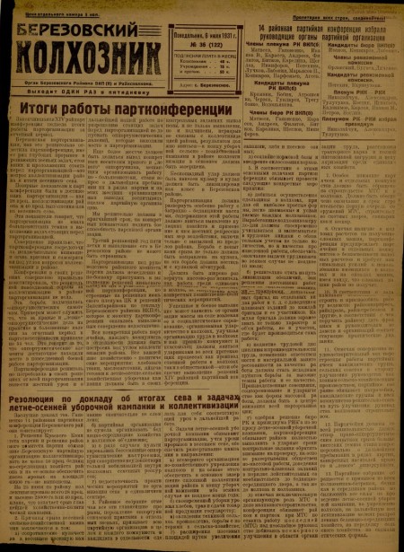 Березовский колхозник : орган Березовского райкома ВКП(б) и райисполкома. - 1931. - № 36 (6 июля)