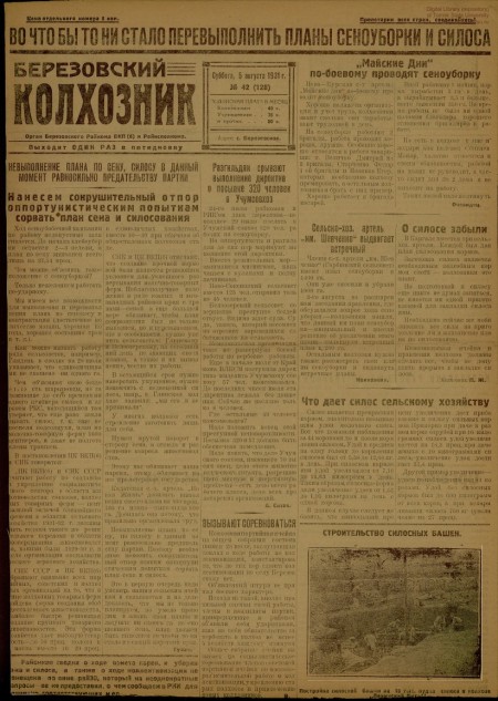 Березовский колхозник : орган Березовского райкома ВКП(б) и райисполкома. - 1931. - № 42 (5 августа)