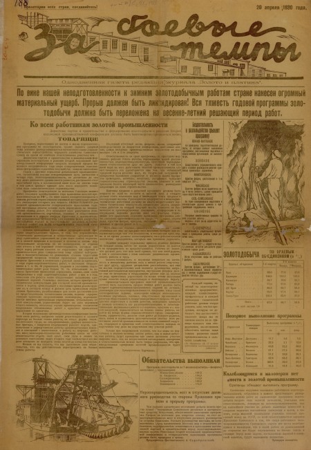 За боевые темпы : однодневные газеты редакции журнала " Золото и платина". - 1930. - 20 апреля