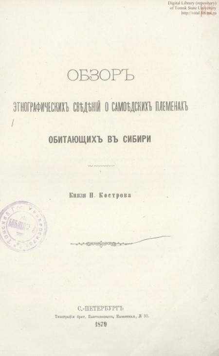 Без обложки. Автор не указан На обороте тит. л.: "Дозволено цензурою. С.-Петербург, 6 Марта 1882 года". На С. 3-4 - Пр