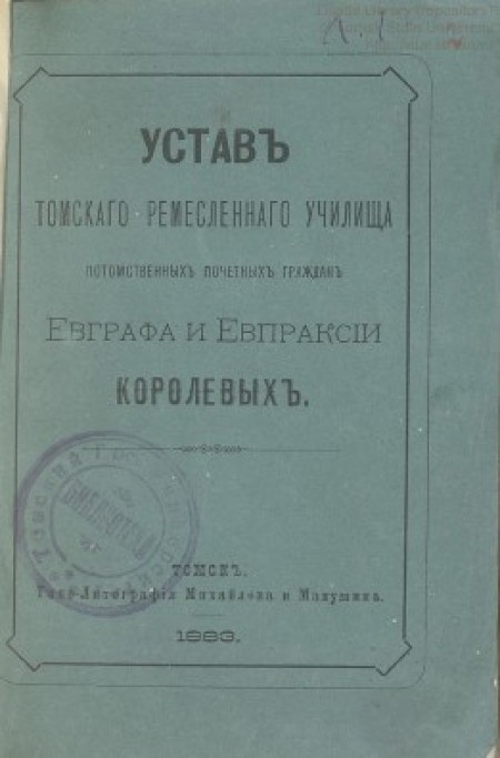 Устав Томского ремесленного училища потомственных почетных граждан Евграфа и Евпраксии Королевых