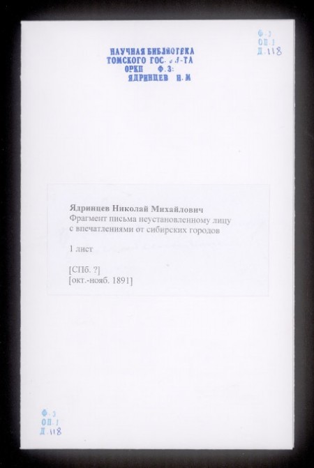 Текст опубликован: Томск: типо-лит. Михайлова и