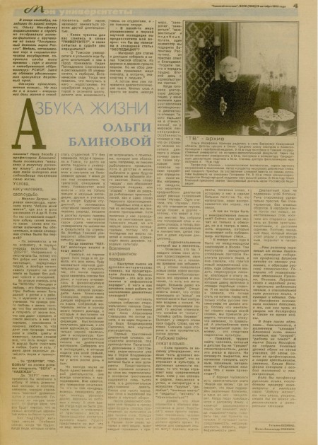 Веснина Т. Азбука жизни Ольги Блиновой / Т. Веснина // Томский вестник. – Томск, 1995. – № 190 (1108) (19 октября). – С. 4.