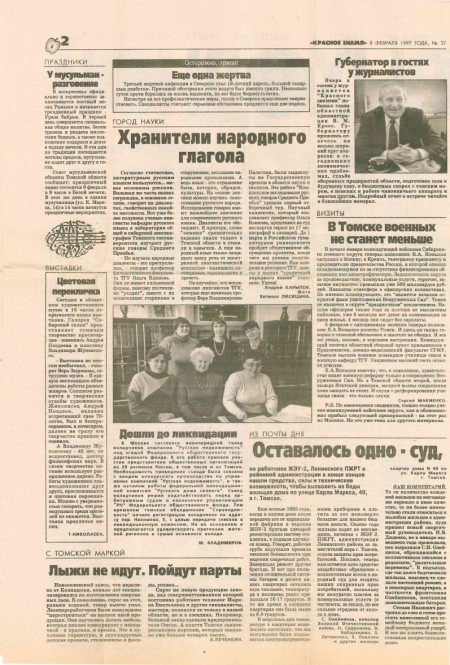 Карыпов А. Хранители народного глагола / А. Карыпов // "Красное знамя". – Томск, 1997. – № 37 (8 февраля). – С. 2.
