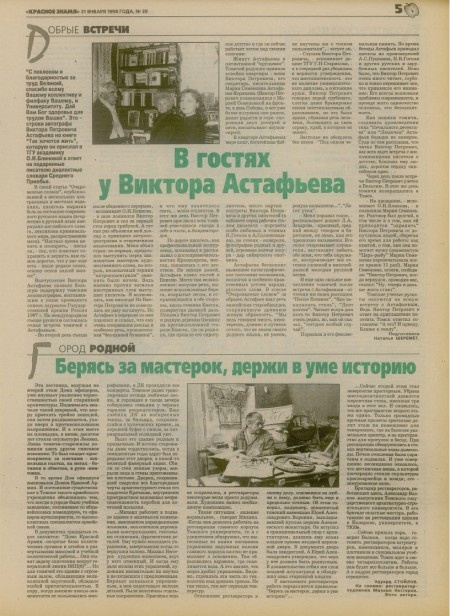 Шеремет Н. В гостях у Виктора Астафьева / Н. Шеремет // "Красное знамя". – Томск, 1998. – № 30 (31 января). – С. 5.